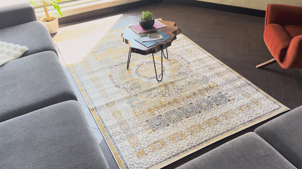 Rainlex 5X7 Cream/Ivory /Medallion Non-Shedding Living Room Bedroom Dining Home Office Stylish and Stain Resistant Area Rug
